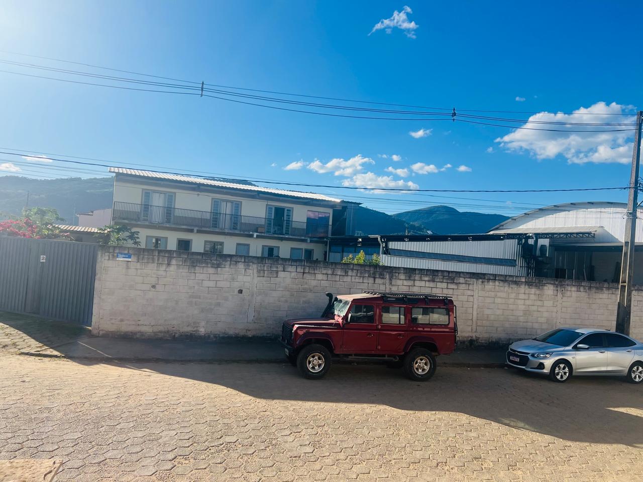 Terreno com área de 1.410m², localizado na esquina, com duas entradas, todo murado, próximo a rodovia; contendo um galpão em alvenaria de bloco, telhado em estrutura metálica coberto com telhas galvanizadas; uma edícula sendo no pavimento térreo podendo ser usado com escritório e pavimento superior com 1 quarto, sala, cozinha e banheiro.